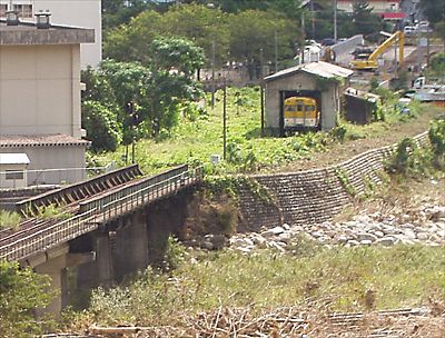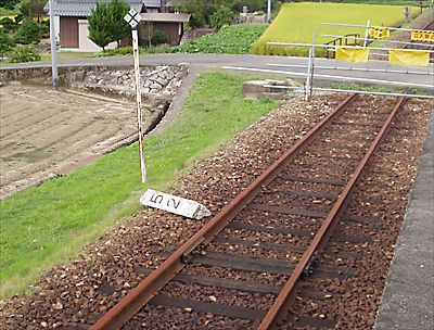 邪魔だったのか抜かれて放置されてます。 踏み切り部分には、警報機があったと思われる 土台が確認できます。