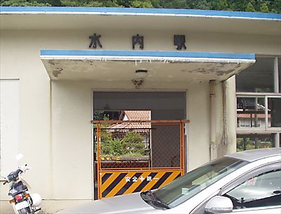 水内駅を探索 有人駅だったようです。入り口は工事用の柵がしてありますが、簡単に入れそうです。