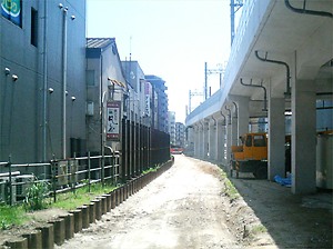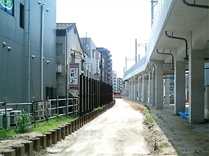 観察を始めて1ヶ月経ちました。仮線とはいえ都心の廃線は撤去が早いですなぁ。宮前側の架線柱が無くなっています。
