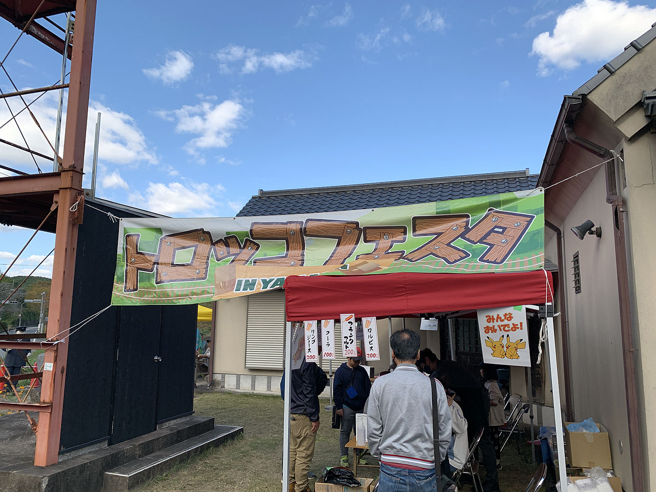 いい感じの秋晴れの中、やって来ましたトロッコフェスタ。飲み物を販売するテントが設置されてるぞ!ピカ◯ュウもおいでって言ってるよ(笑)