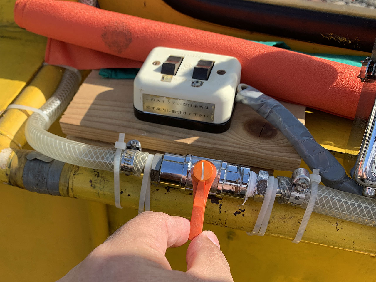 このレバーをひねって圧縮空気を送ると警笛が鳴ります。本物の機関車に比べると迫力は落ちますが、あの音色です。たまらんです!